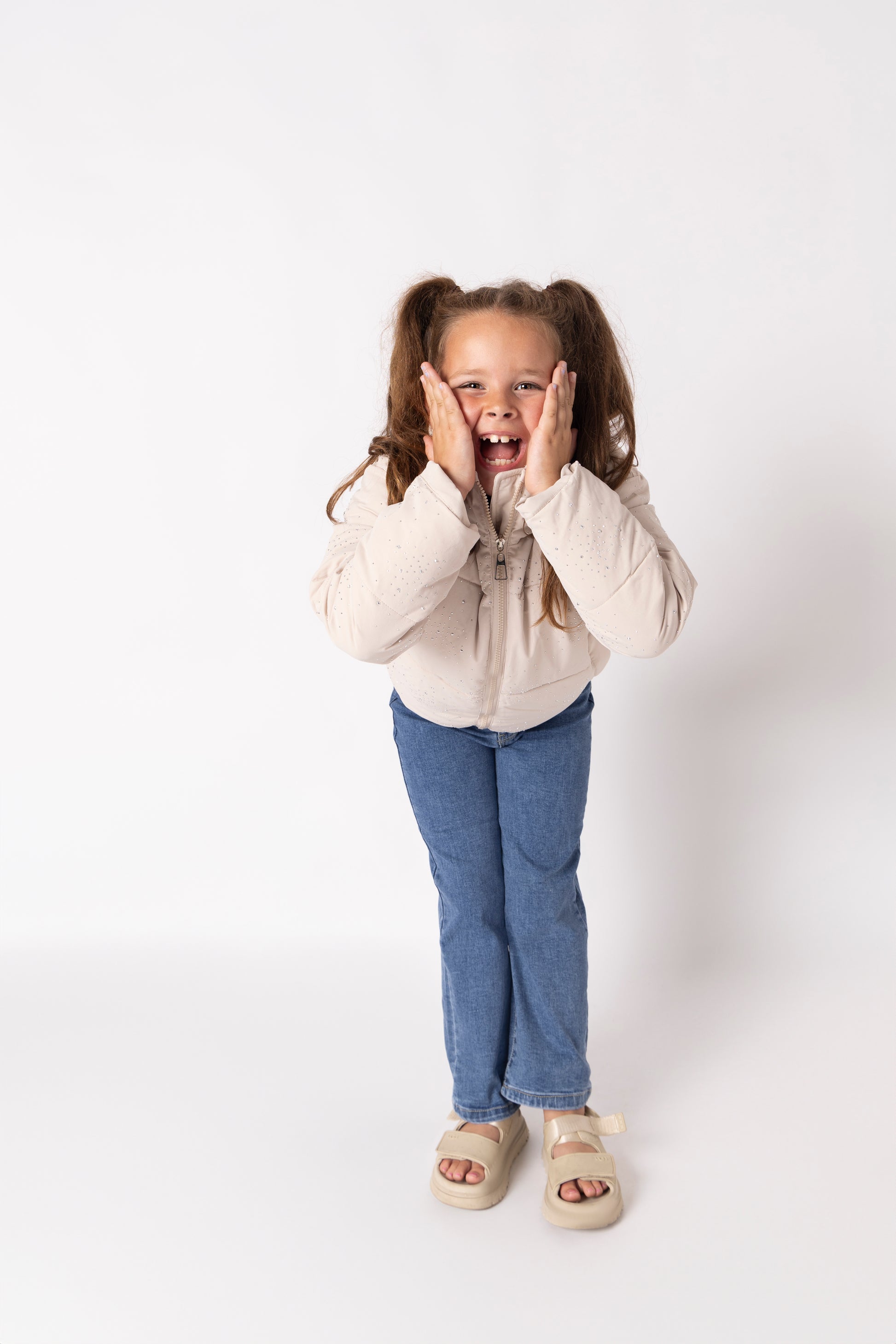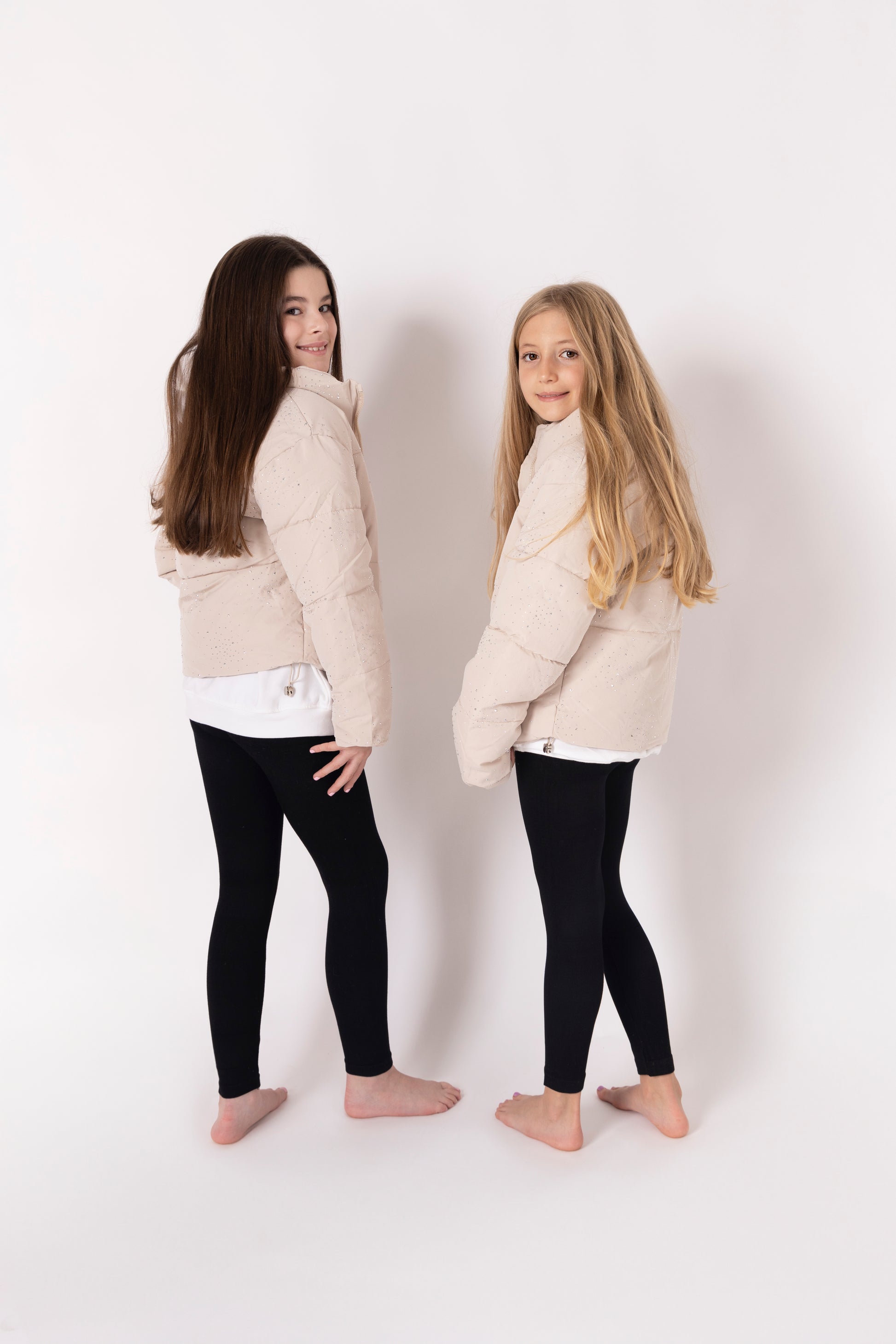 Diamanté sparkle detail beige cropped puffer jacket